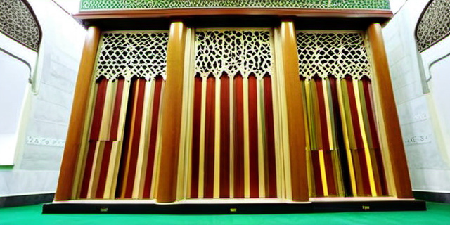 - Форма и высота минбара — повышенная кафедра помогает звуку распространиться;