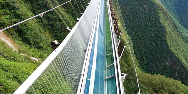 На сегодняшний день одним из самых длинных стеклянных мостов считается «Тяньмэнь» в Китае, длина которого составляет около 430 метров и расположен он над глубокой горной пропастью. Но недавно было завершено строительство еще более впечатляющего объекта — моста длиной 526 метров, который простирается над живописной долиной с вертикальными скальными стенами и глубиной ущелья более 300 метров.